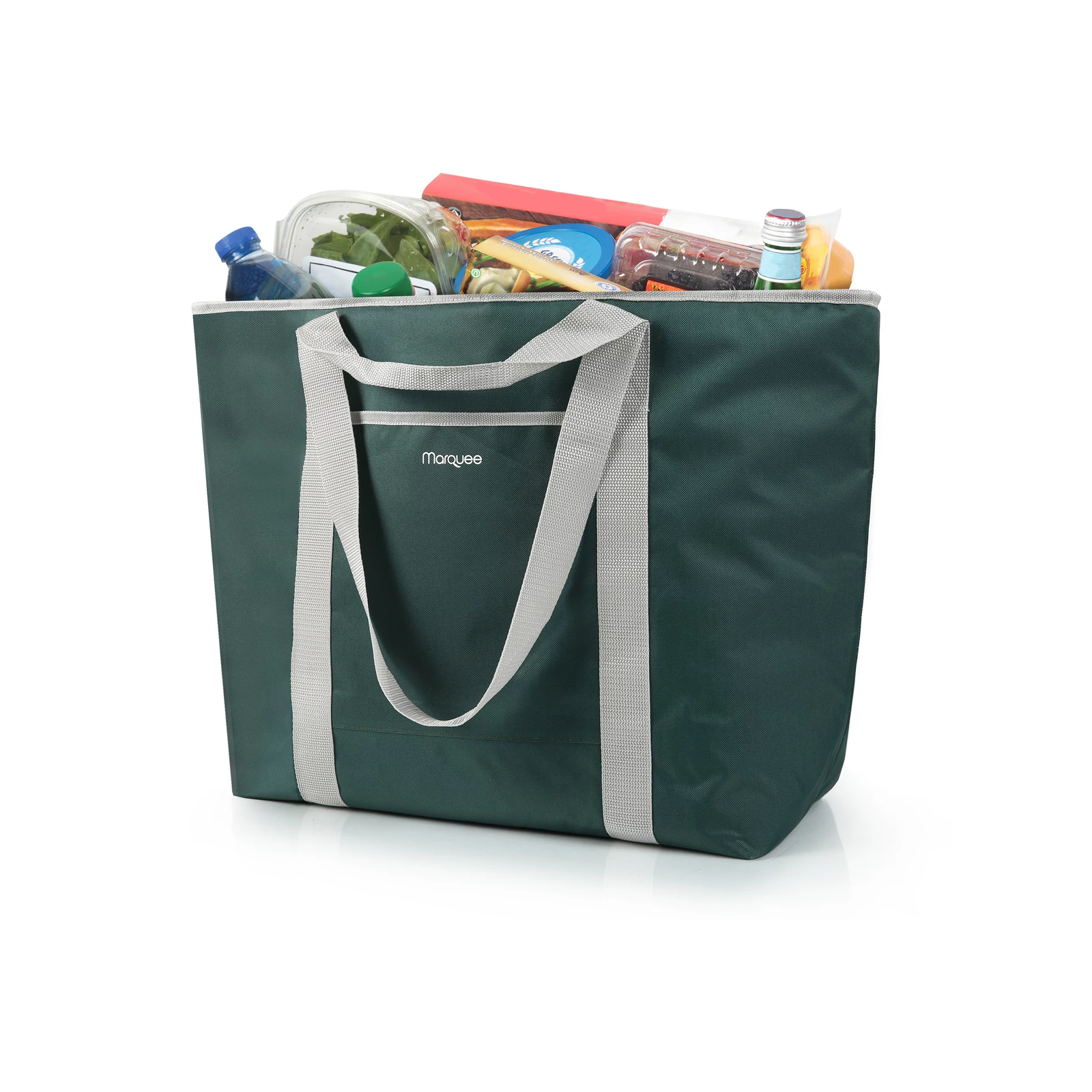 The Marquee Tote has high density thermal insulation and Ultra Safe®, Easy Clean, Leak Proof, PEVA Lining, meaning, supper easy to clean and your food is safe from bacteria.The 2 different size carry handles make carrying the Tote so easy, either over the shoulder or with your hands.The slip front pocket is perfect for storing your keys, phone or shopping list.
