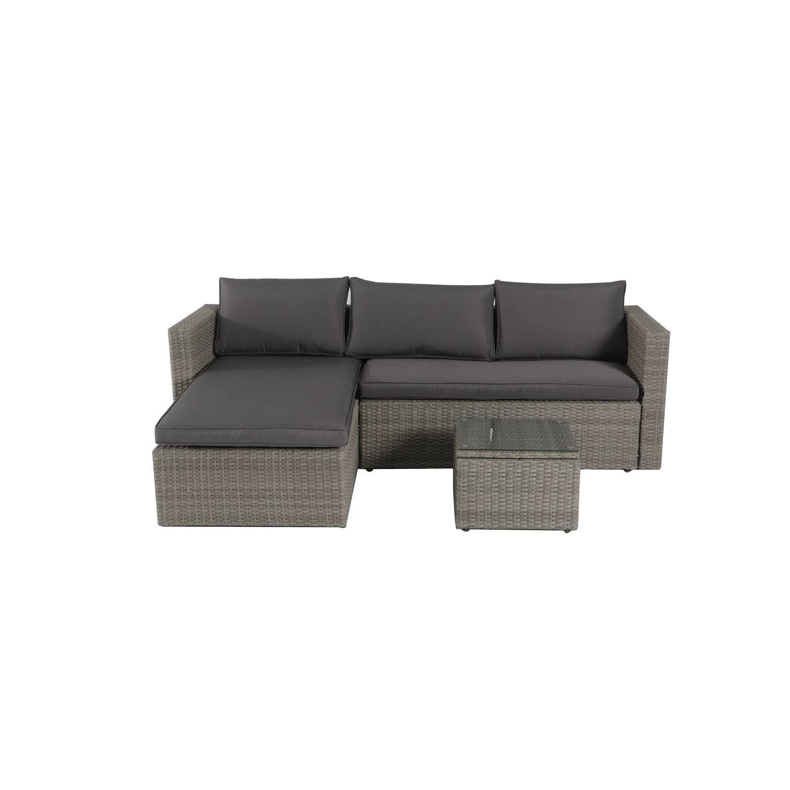 The Marquee Bayfield 3 piece Corner Sofa features a durable steel frame wrapped in hand woven resin wicker. The chaise lounge provides generous space to put your feet up in comfort. The accompanying coffee table comes with a 5mm tempered glass table top.