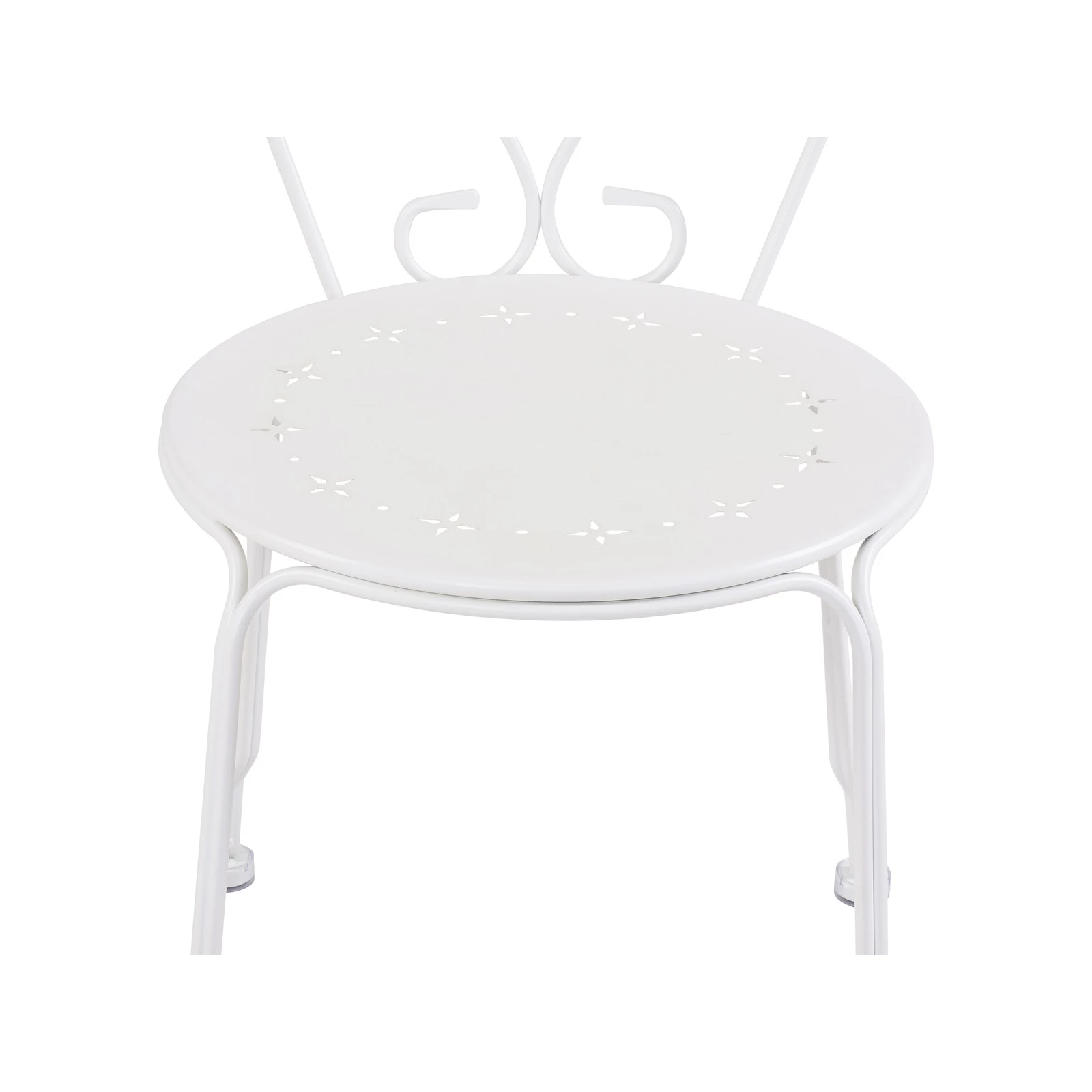 Add a romantic touch to you outdoor area or courtyard with this 3 piece Jolie bistro setting. Made from powder coated steel frame making it strong, sturdy and durable. The chairs features beautiful stamped design which is complimented by the curved frame and legs. Available in two colours: White and Light Green
