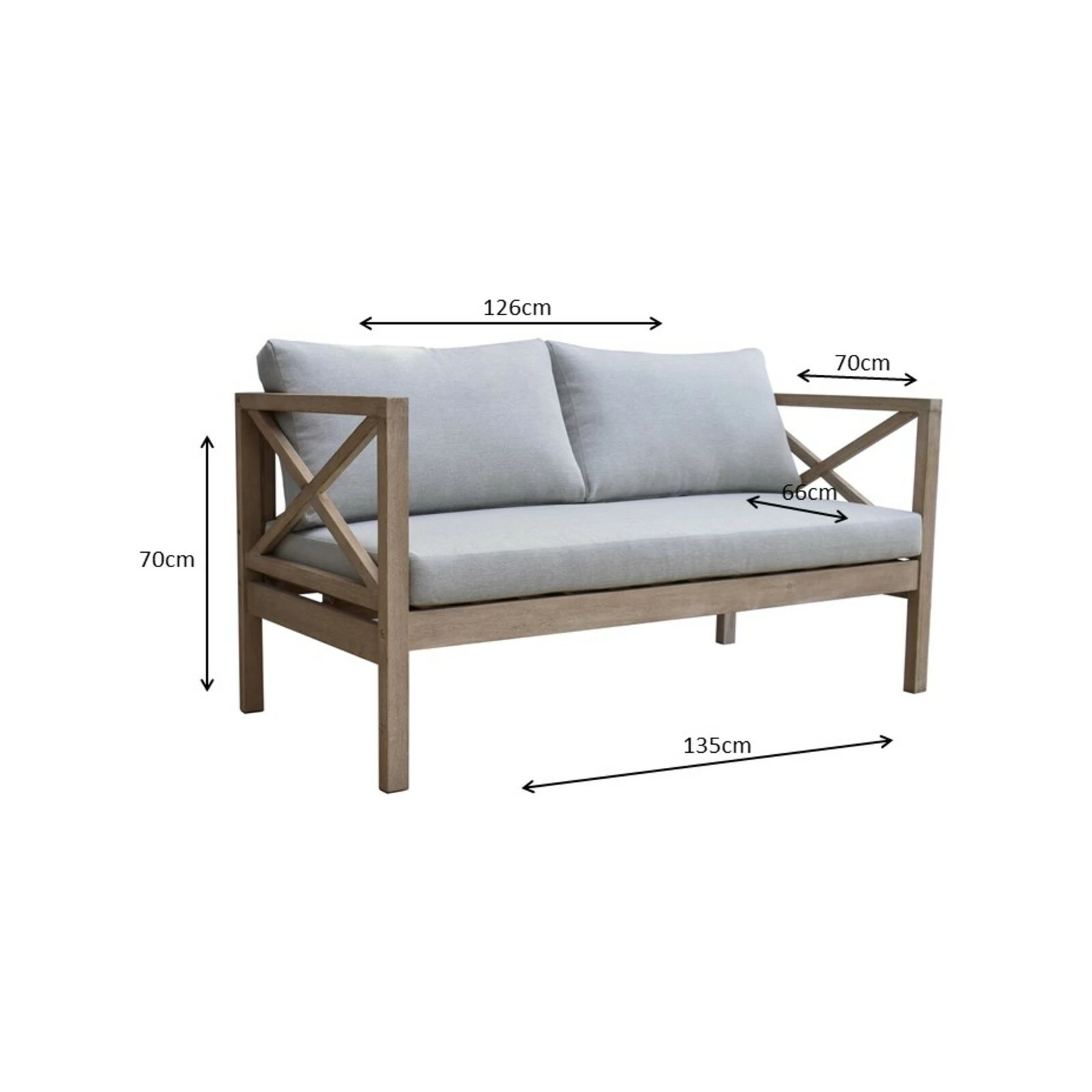 The Harbour 2 seater is crafted from sustainably harvested Acacia timber that meets the standards of the Forest Stewardship Council (FSC®). The timber is brushed with a white washed finish. Also part of the Harbour collection is a 1 seater sofa and coffee table, which all create a beautiful, rustic style outdoor setting with cross back frames.
