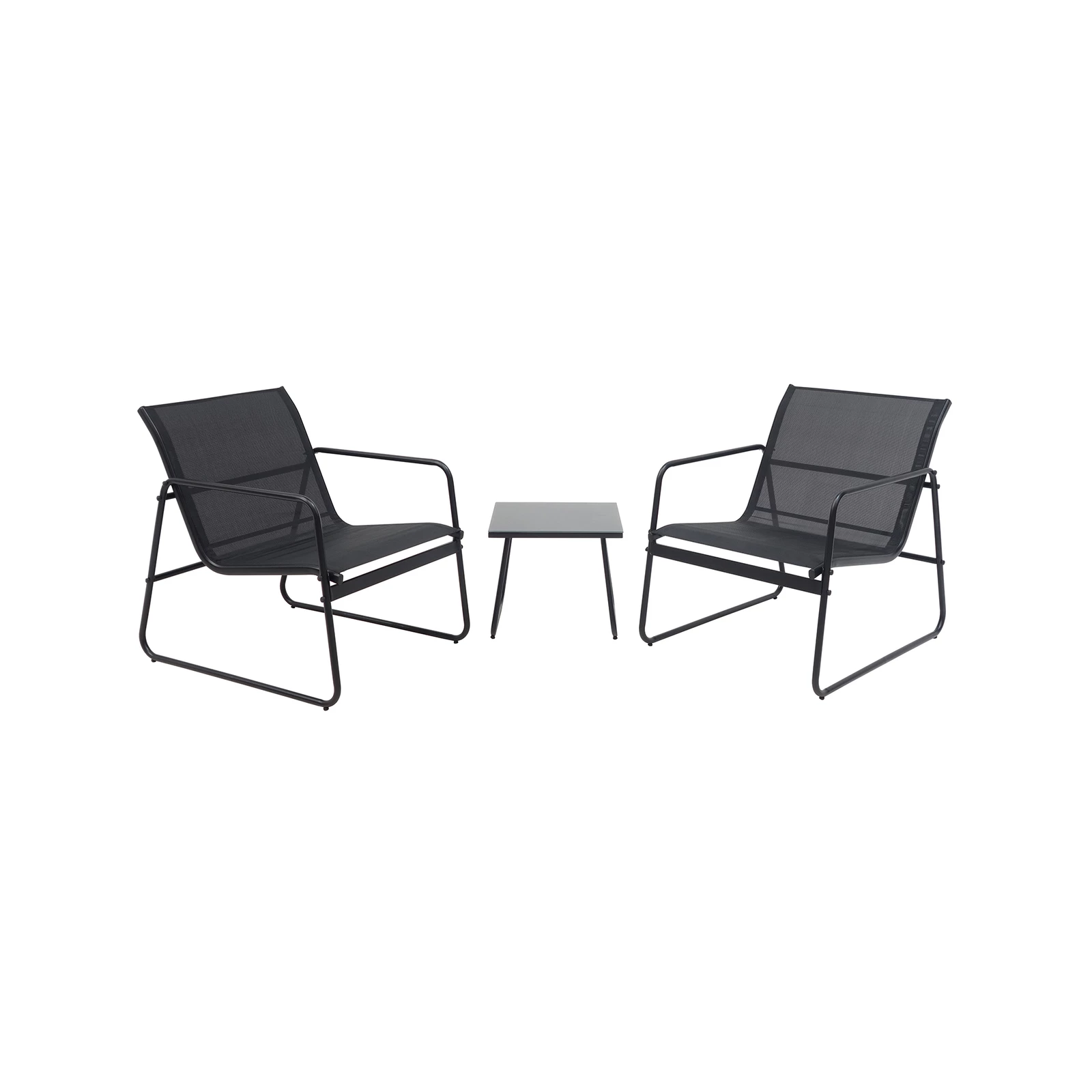 The comfortable Centola 3-piece setting is the perfect piece for any balcony, terrace or garden.With its strong powder-coated steel black tube frame, sling seats, and printed glass side table, this contemporary design is stylish but simple and will inspire you to fit this setting seamlessly into your outdoor area.
