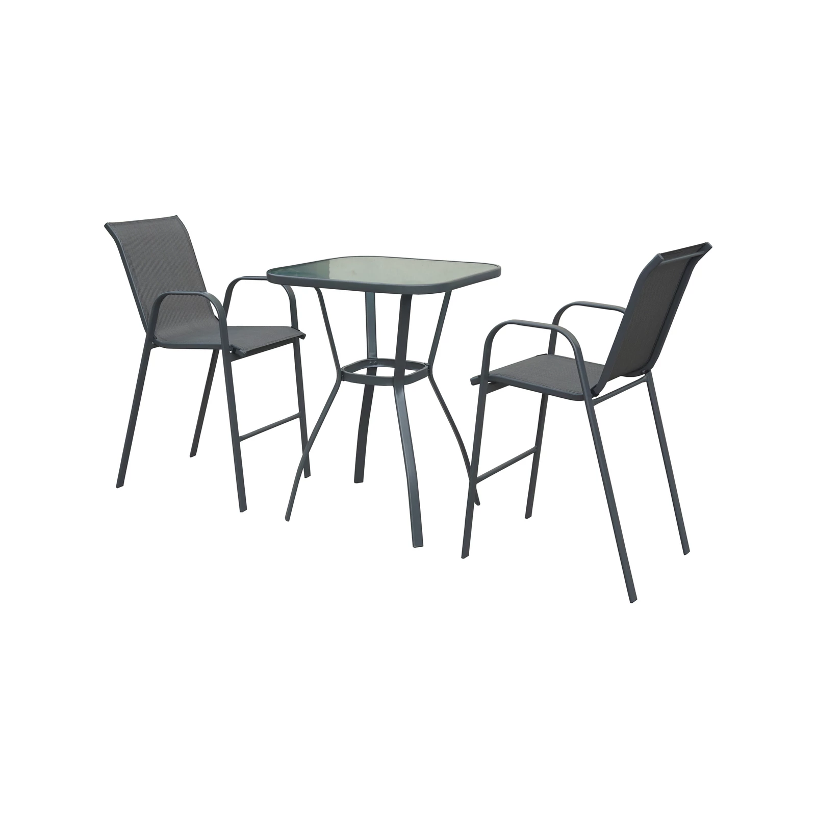 The Marquee steel sling back three piece setting features 2 black and grey sling back chairs with a tempered glass table with steel frame.Providing elegance, comfort and style in one package, the Marquee steel sling back three piece setting is perfect for your outdoor entertaining area.