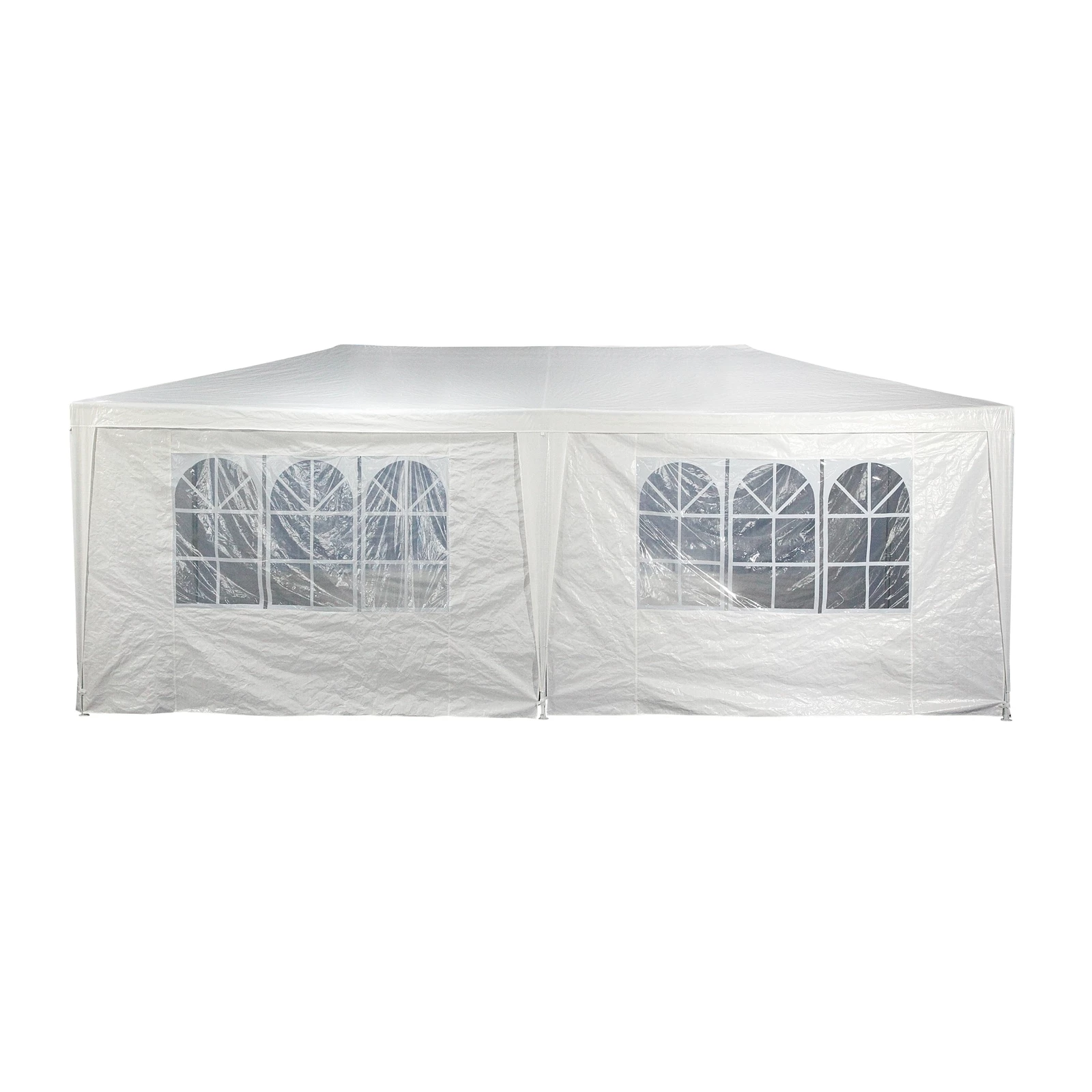 Exuding elegance and class with a traditional design, this pavilion features clear windows to let in the natural light, while protecting from the wind and rain. Equipped with a sturdy steel frame and hardy polyethylene cover, long-lasting performance and resistance against weathering is guaranteed on any occasion.